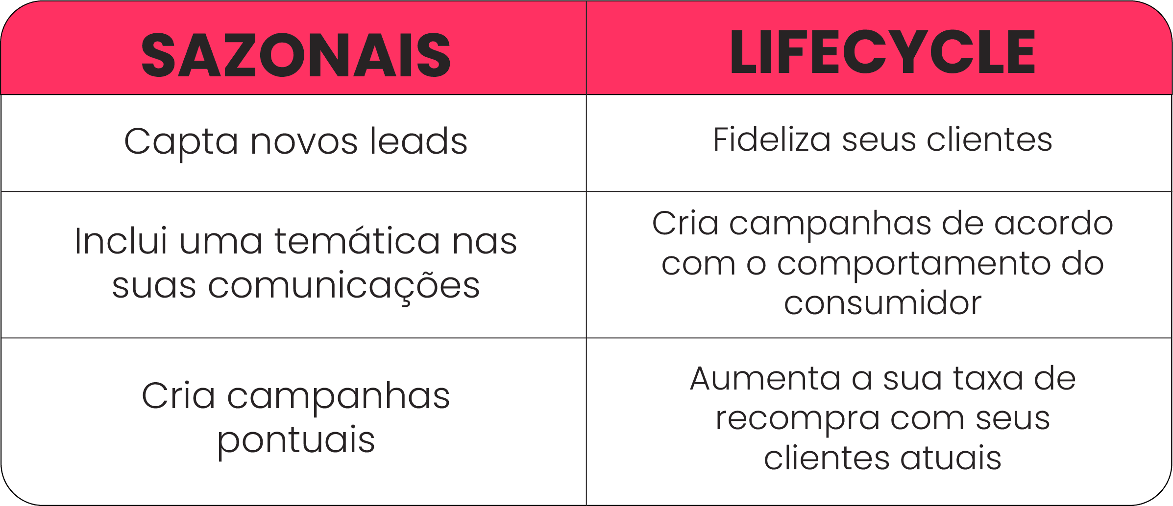 Diferença entre campanhas sazonais e campanhas de lifecycle: