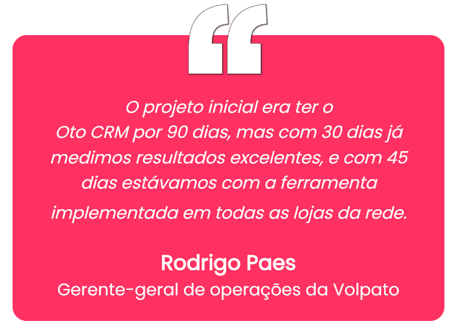Após seis meses de uso da ferramenta diariamente em 30 lojas por cerca de 120 vendedores, a Volpato gerou mais de R$2 milhões de receita em vendas atribuídas aos contatos realizados pelo Oto. Em algumas unidades da rede, os resultados representam o equivalente a 30% de toda a receita.